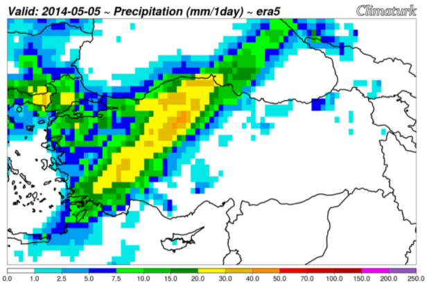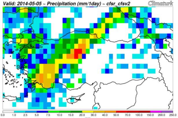 Climaturk seeks for the past thunderstorm events in Turkey, from 2010 to 2020, and offers researchers to visualize the atmospheric field variables for the storm of their interest, in a 4-hourly interval. It is very efficient to visualize the state of the atmosphere, for thunderstorm activities, to make connections and reasonings between the atmospheric field variables.