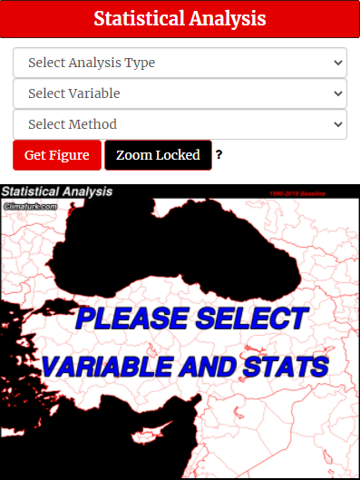 You will get hands-on experience and knowledge about Turkey's up-to-date meteorological and statistical state. Once you enter the variable and statistical method of your interest Climaturk will present you elaborately-designed visualizations.
